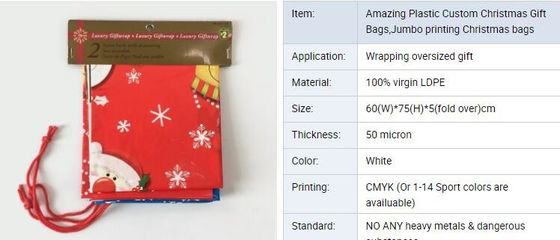 Large size custom design plastic biodegradable disposable christmas Giant gift bag